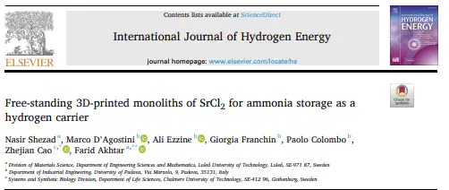 New paper out in Journal of Hydrogen Energy: Free-standing 3D-printed monoliths of SrCl2 for ammonia storage as a hydrogen carrier More info: click here