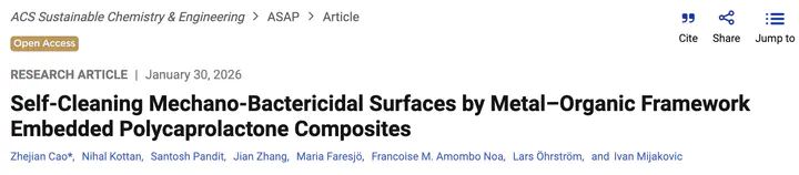 New paper out in ACS Sustainable Chemistry & Engineering: Self-Cleaning Mechano-Bactericidal Surfaces by Metal–Organic Framework Embedded Polycaprolactone Composites