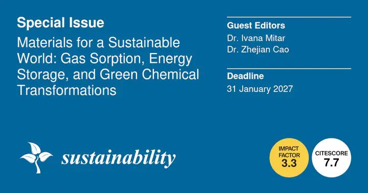 Special Issue of Sustainability is calling for papers Materials for a Sustainable World: Gas Sorption, Energy Storage, and Green Chemical Transformations