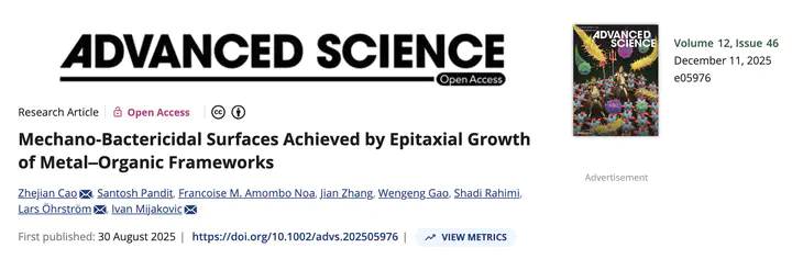 New paper out in Advanced Science: Mechano-Bactericidal Surfaces Achieved by Epitaxial Growth of Metal-Organic Frameworks